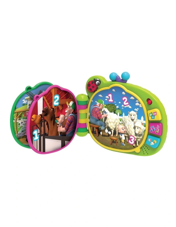 Learn and play with JJ! Join JJ on a learning adventure on the farm with the CoComelon Learning Book. This fun, interactive book has over 50 learning phrases and features 3 modes of play: music, numbers, and animal sounds. Toddlers, preschoolers, and parents can sing along to Old MacDonald Had a Farm, while looking at images of JJ with various farm animals.