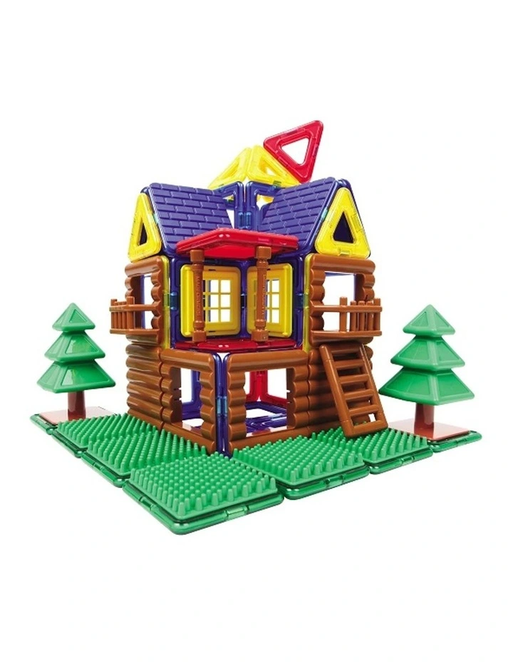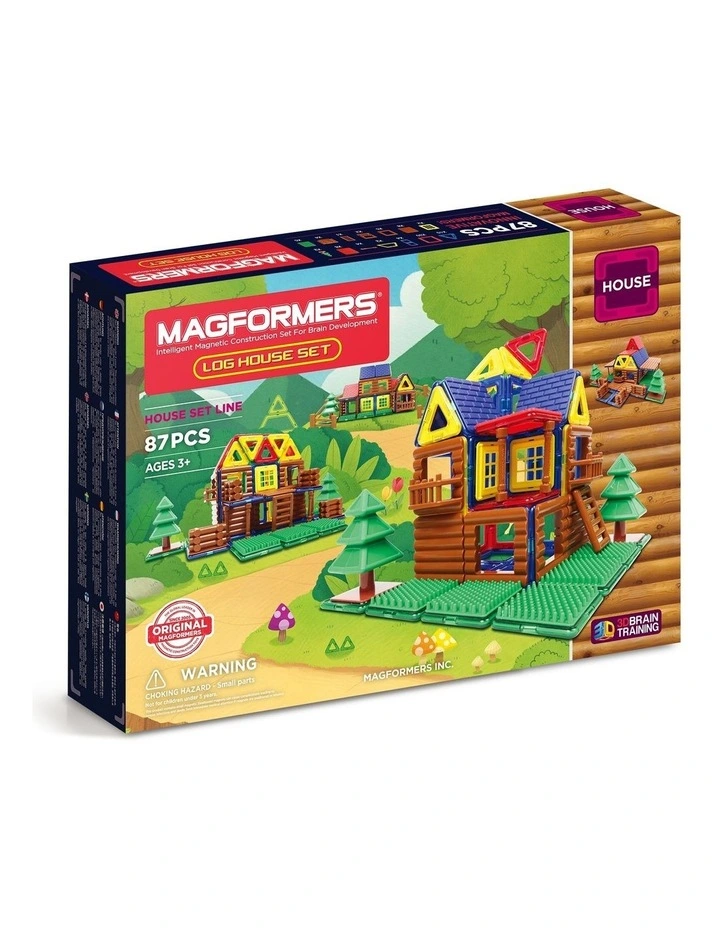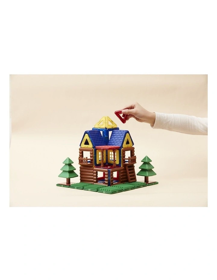 This set contains 87 pieces, including roof tiles / bricks, windows, log walls, balconies, log fences, a ladder, grass tiles and trees accessories!These house accessories click inside Magformers pieces and are detachable, interchangeable and compatible with other Magformers Sets.Everything you need to build a log house!AGE 3