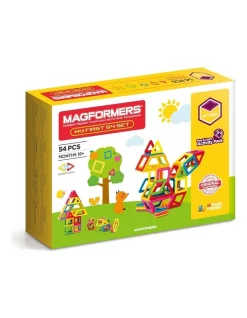 The My First Sets are specially designed for younger children. The pieces are the same size as the standard Magformers pieces, but they are made of vivid crayon (solid) colours to stimulate the visual senses of younger children.See their fascinated little faces when childrenstick the pieces together with their little fingers!The Set comes with a beautifully printed colour book for children to match pieces based on colours and shapes, andalso come with some playboards, and cards of models that can be built with the pieces in the set.With the additional shapes, when compared to the My First 30 Set (which contains triangles and squares), your little one can build more models as they get older.Recommended age: 18 months