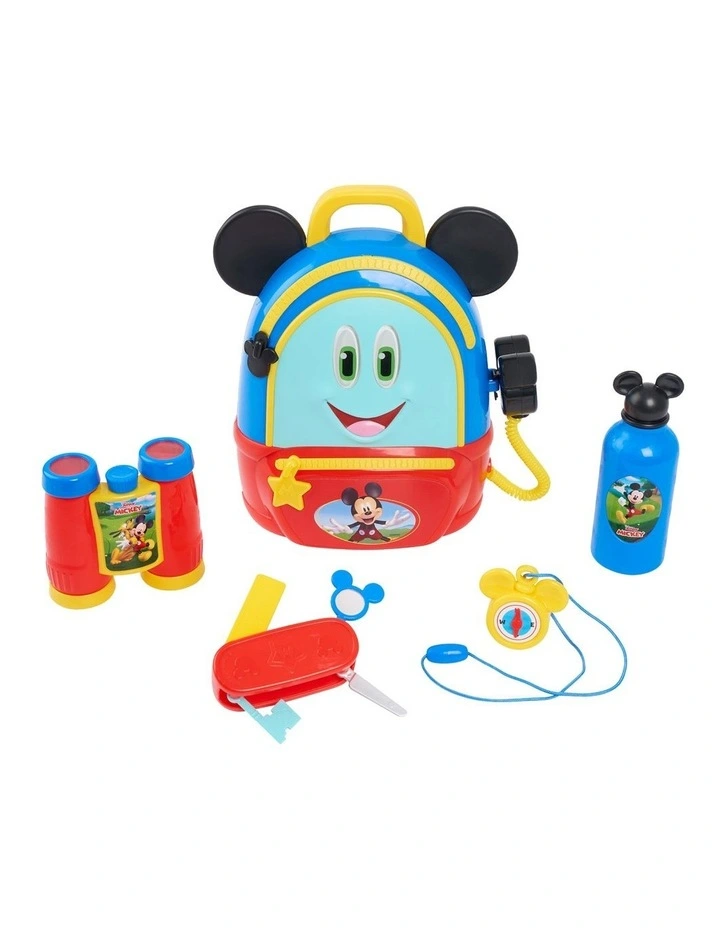 When the adventure is over, kids can open the backpack to store all the accessories. Designed with a carry strap and handle, this backpack is great for little adventurers to take on the go! The Mickey Mouse Funhouse Adventures Backpack includes a backpack, play compass, play binoculars, play multi-tool, play canteen, and play communicator.
