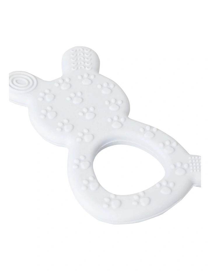 This silicone teether is designed in a cute bunny shape and features a range of textures, designed to sooth and comfort teething babies. The easy-grip ring shape is cute and easy to clean.